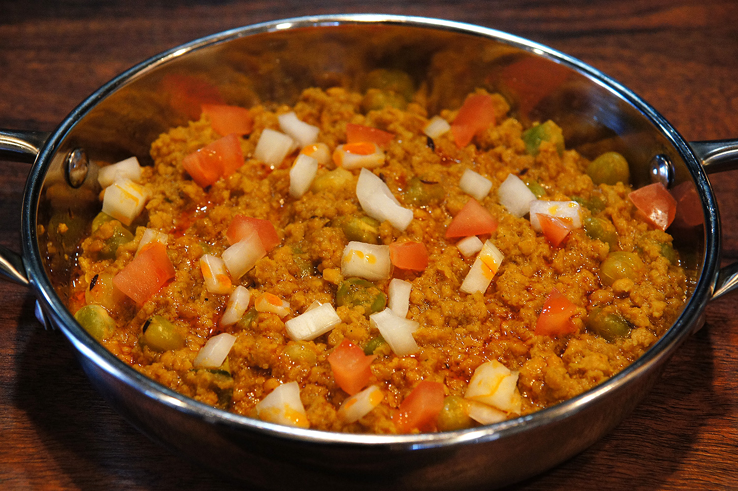 キーマ(鶏ひき肉)とマタル(ドライグリーンピース)のカレーです。