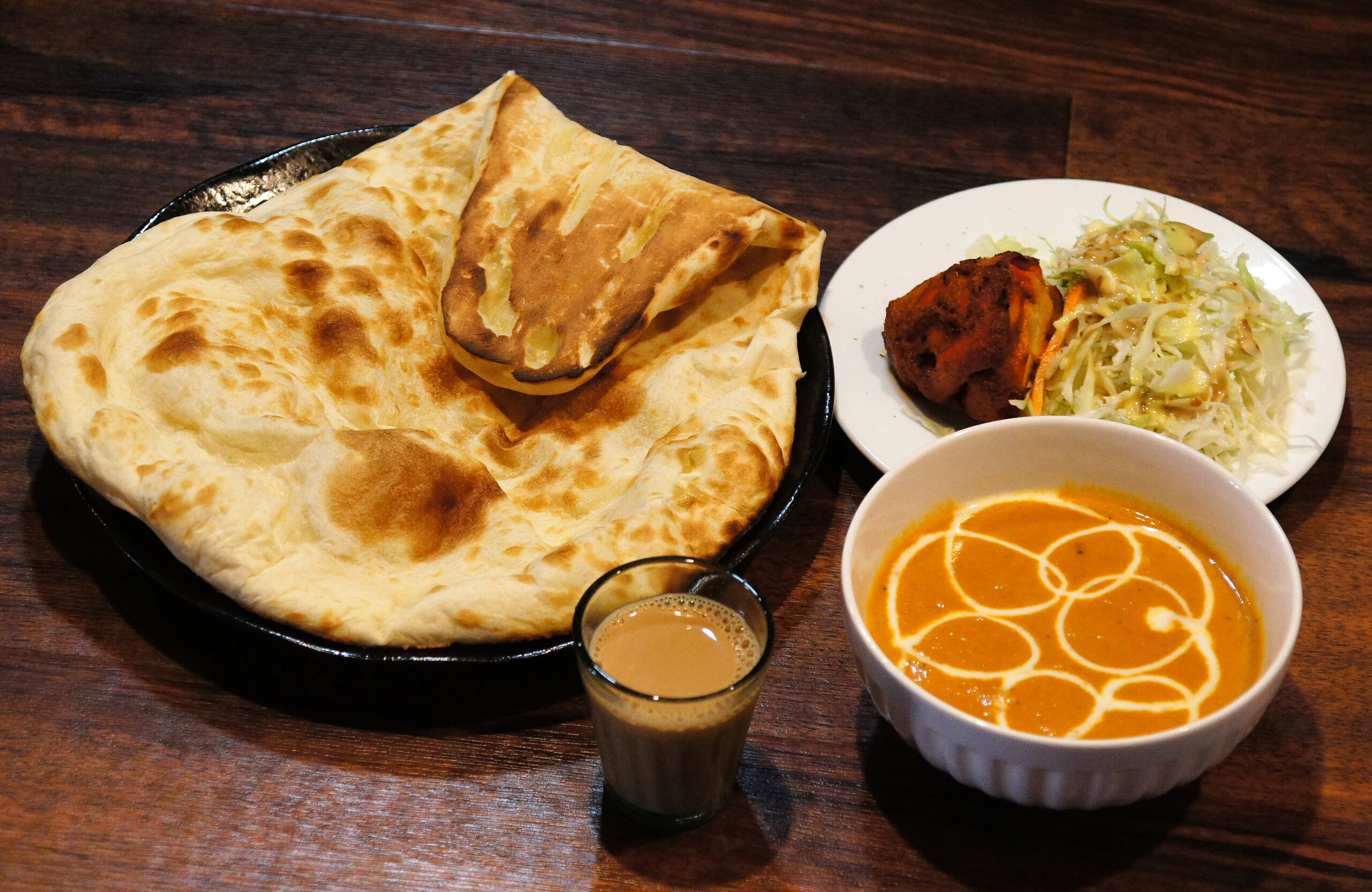 カレーの量は通常のセットの70%程度。ナンは通常サイズ。ドリンクはミニサイズでチャイとラッシーのみです。