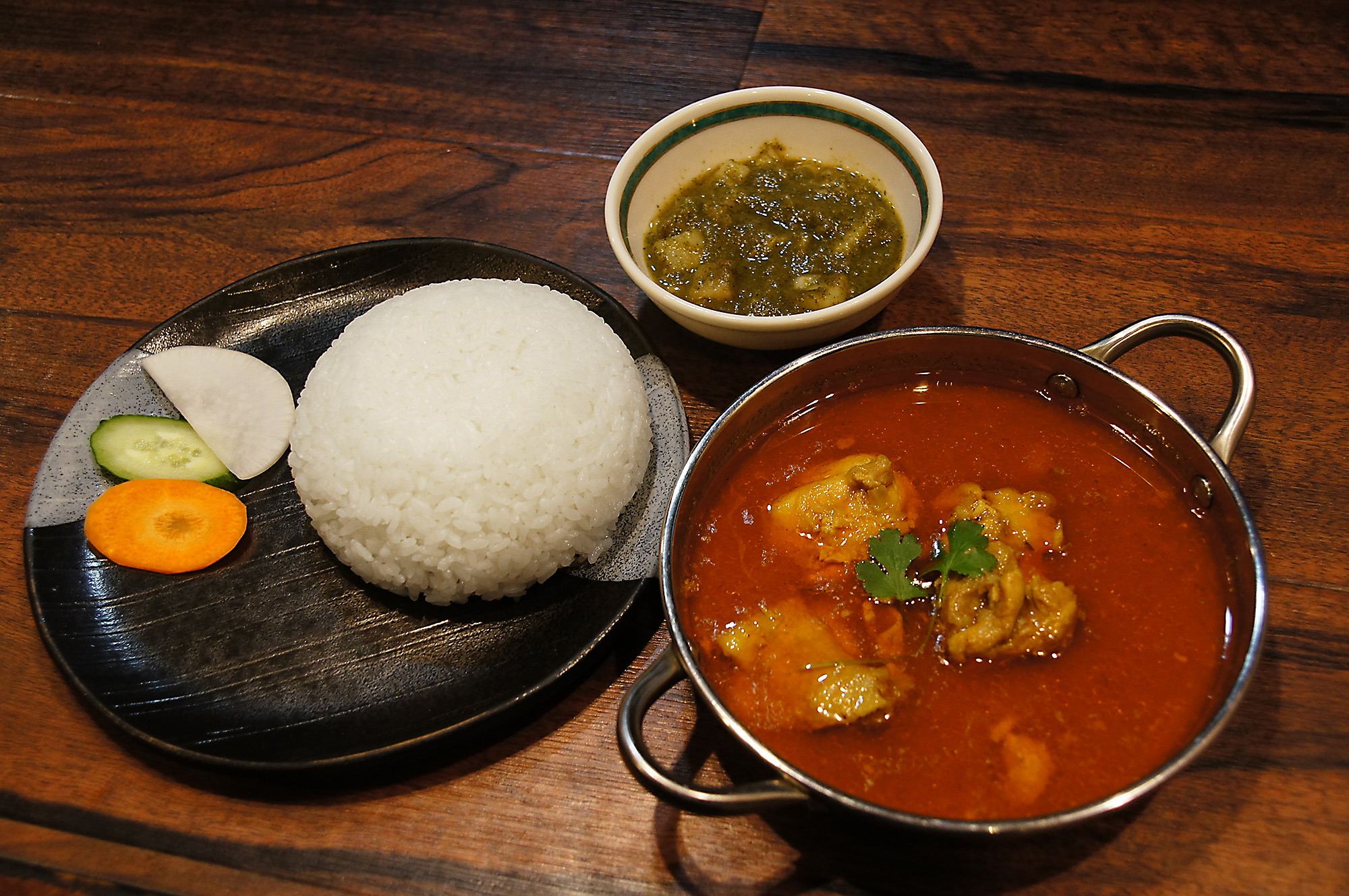 普段のデイリーカレーは強めのカレー+マイルドなダールという組み合わせがほとんどですが、こちらはマイルドなカレーに激しいチャットニーの組み合わせという新コンセプトのデイリーカレーです。