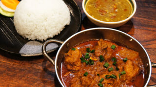 デイリーカレー・Dセットのカレー「豚肉と野菜のタルカリ」のご紹介です。 「豚肉と野菜のタルカリ」は以前にも登場したことのあるメニューですが、その時とは野菜の内容がガラッと変わっています。今回はしいたけ、ナス、ほうれん草、ピーマンなど、豚肉と...